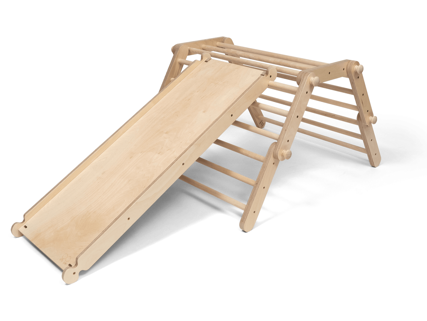 Ändern Sie täglich die Form des Kletterrahmens – niedrigeres oder steileres Dreieck, hausförmig oder flach, oder vielleicht zwei kleine Dreiecke – passen Sie die Kletterherausforderungen dem Entwicklungsstand und den Fähigkeiten Ihres Kindes an. Für noch mehr Spaß – fügen Sie eine oder zwei Rutschrampen hinzu.