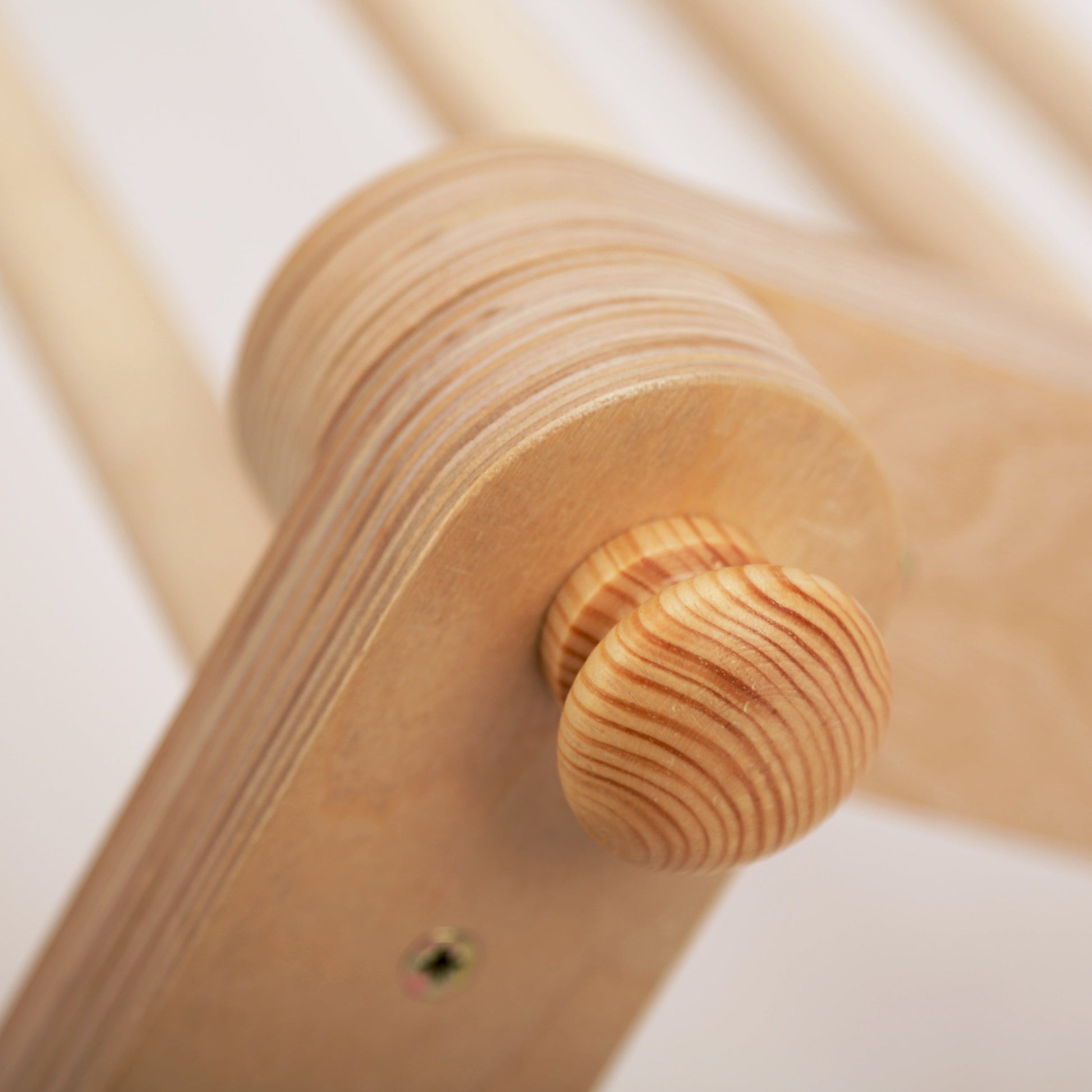 La cornice di arrampicata può essere smontate slegando le maniglie con l'asta filettata. Ciò ti consente di dividerlo in sezioni, che possono essere facilmente conservate sotto un letto/dietro un armadio e in luoghi simili.