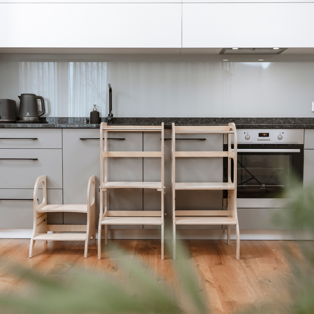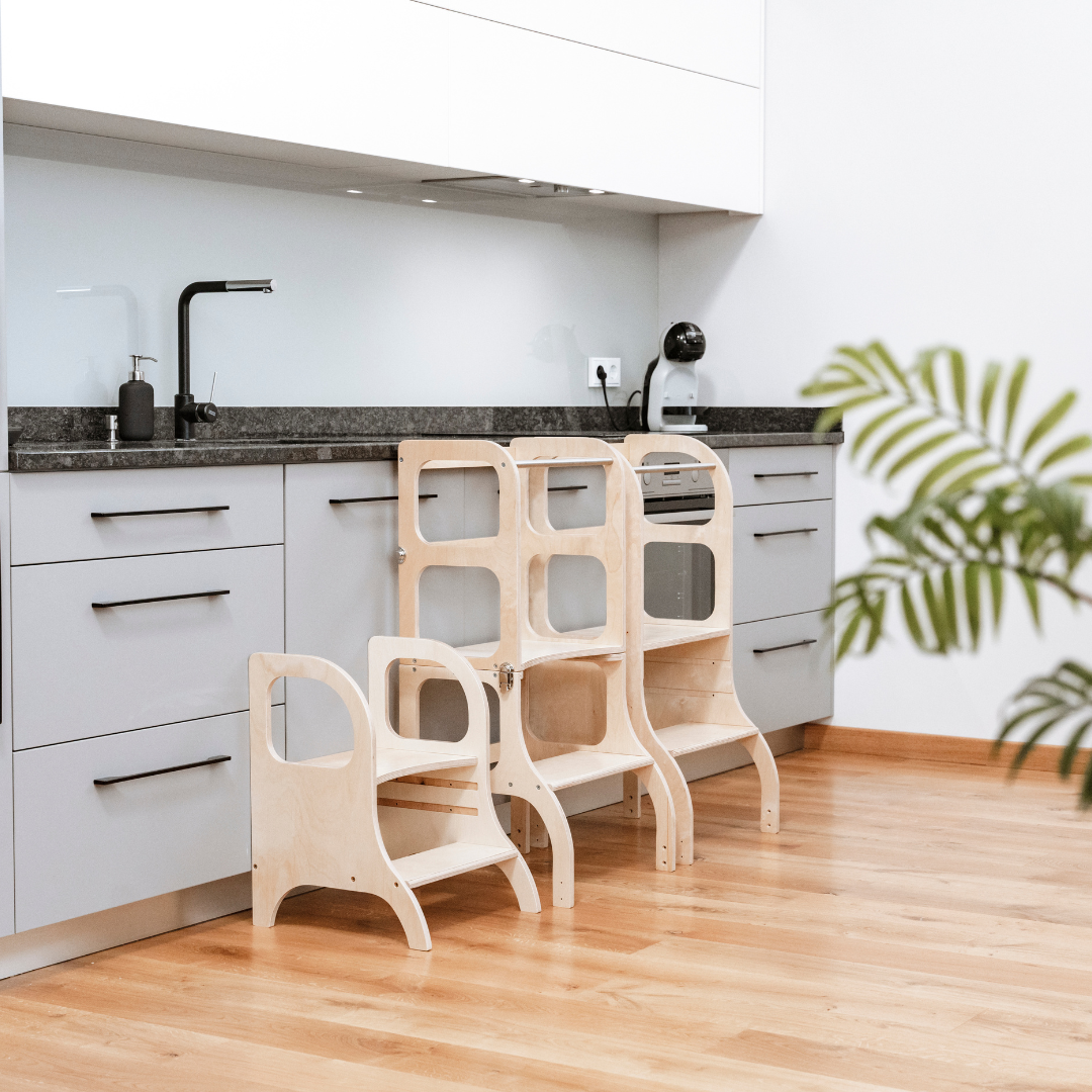 As parents ourselves, we created the helper tower-table solution so families would have a multifunctional furniture that is useful and helpful for both - the parents and the child.